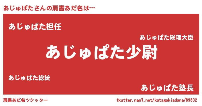 | ヘコむあだ名 | 『あじゅぱた(笑)』『あじっぺ』 |