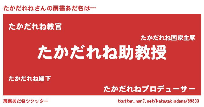 | ヒーロー風カッコイイあだ名 | 『天空の使者たかだれね』『仮面タカダー』 |