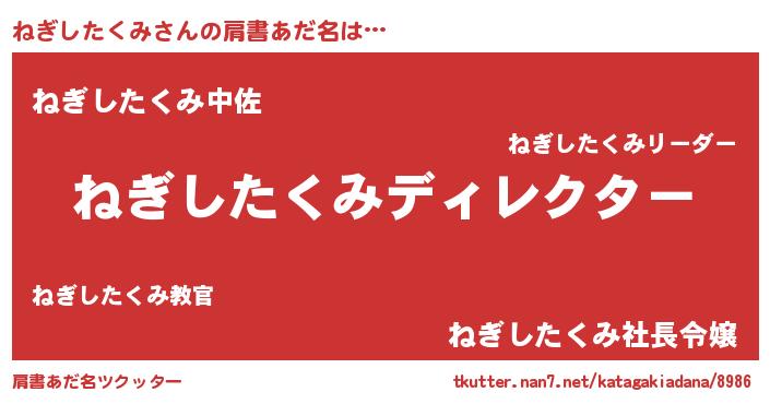 | 男性向けラノベタイトル風あだ名 | 『ねぎしたくみに滅ぼされるだけの簡単なお仕事です』 |