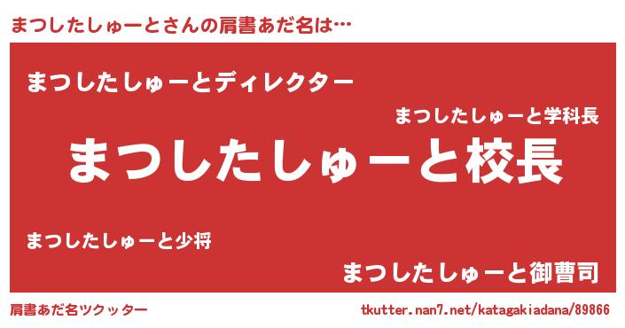 | 胡散臭い通販商品みたいなあだ名 | 『来世でも幸せになれる健康食品…その名も「まつしたしゅーと」』 |