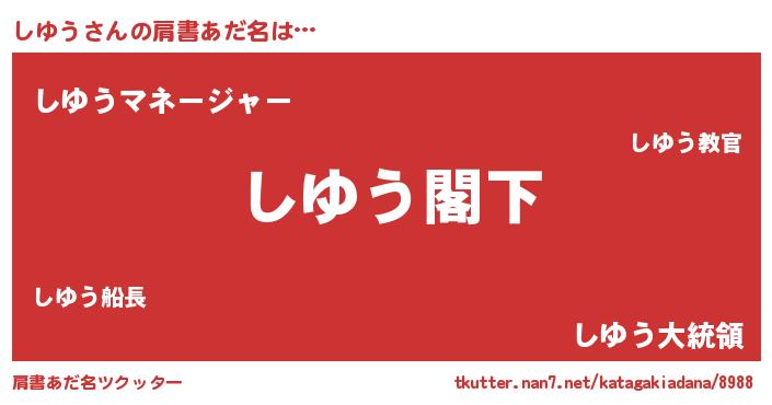 | ヘコむあだ名 | 『なまこ酢』『しゆう(笑)』 |