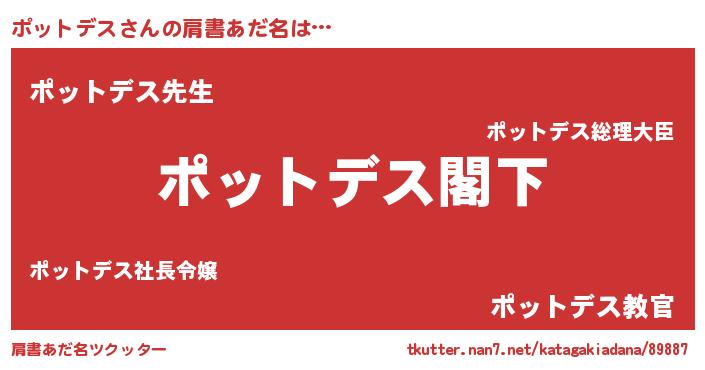 | ヒーロー風カッコイイあだ名 | 『超時空戦士ポットデス』『仮面ポッダー』 |