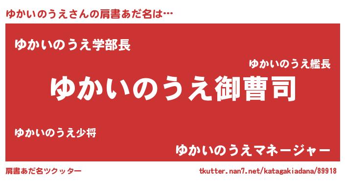 | ポケモン風あだ名 | 『ユカチュウ』『ユックウザ』 |