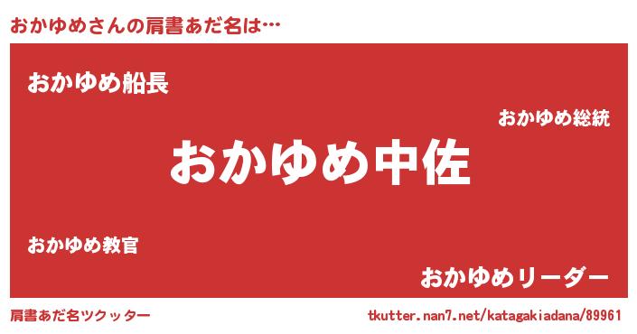 | 男性向けラノベタイトル風あだ名 | 『おかゆめ~年齢イコール彼女いない歴の魔法使い~』 |