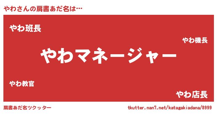 | ポケモン風あだ名 | 『ヤワゴンZ』『ヒヤワ』『ヤワチュウ』 |