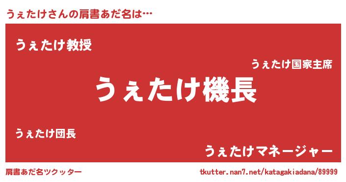 | 欧米人風あだ名 | 『うぇたけ・ステッグマイヤー』 |