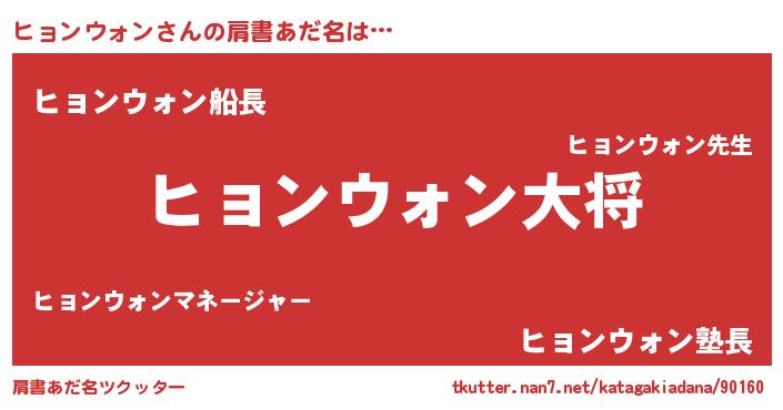 | 男性向けラノベタイトル風あだ名 | 『転生したらヒョンウォンだった件』 |