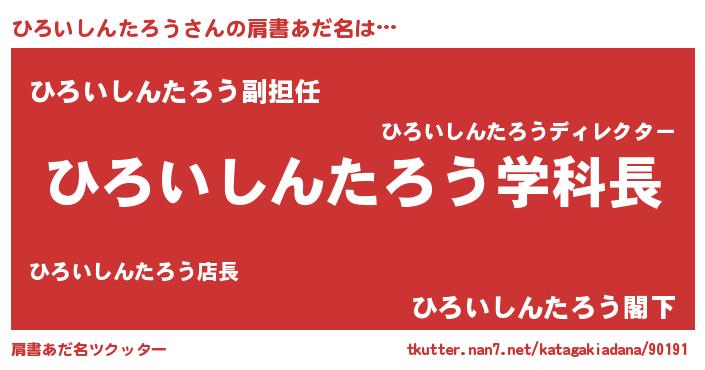 | ヘコむあだ名 | 『ひろいしんたろう(苦笑)』『ひろっふぃ~』 |