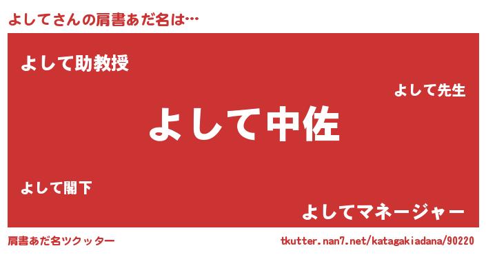 | ヘコむあだ名 | 『よして(笑)』『よしを』『酢こんぶ』 |