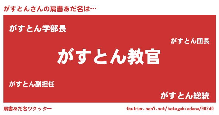 | 男性向けラノベタイトル風あだ名 | 『この素晴らしい世界にがすとんを!』 |
