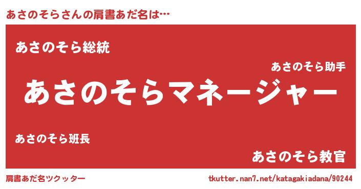 | 意味不明あだ名 | 『自称あさのそら』『永久保存あさのそら』 |