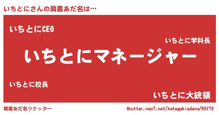 | 男性向けラノベタイトル風あだ名 | 『はたらくいちとにさま!』 |