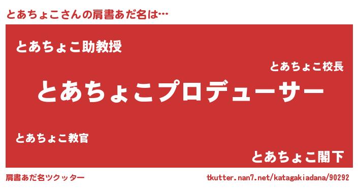 | ヘコむあだ名 | 『とあちょこ(遠い目)』『とあふぇ~』 |
