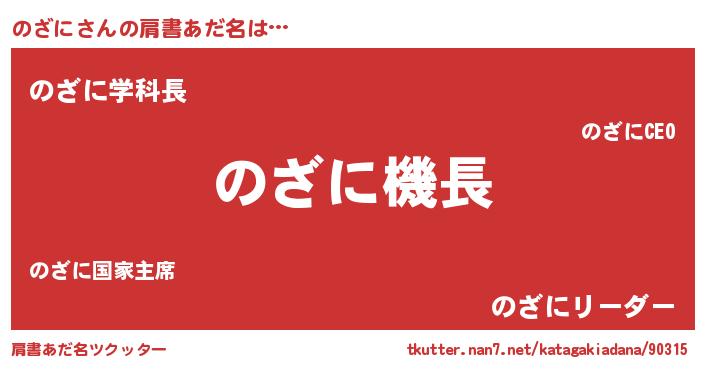 | ヘコむあだ名 | 『のざぷりん』『のざもー』 |