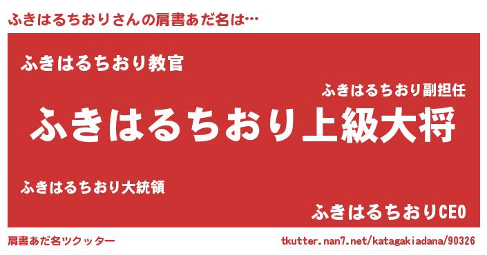 | 恥ずかしいあだ名 | 『プリティーふきはるちおり』『ふきちん』 |