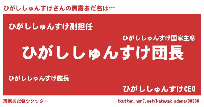 | ポケモン風あだ名 | 『ヒヒガシシュンスケ』『ゼニヒガ』 |