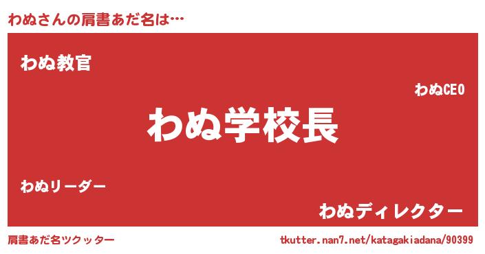 | ヒーロー風カッコイイあだ名 | 『慈愛の使者わぬ』『仮面ワヌダー』 |