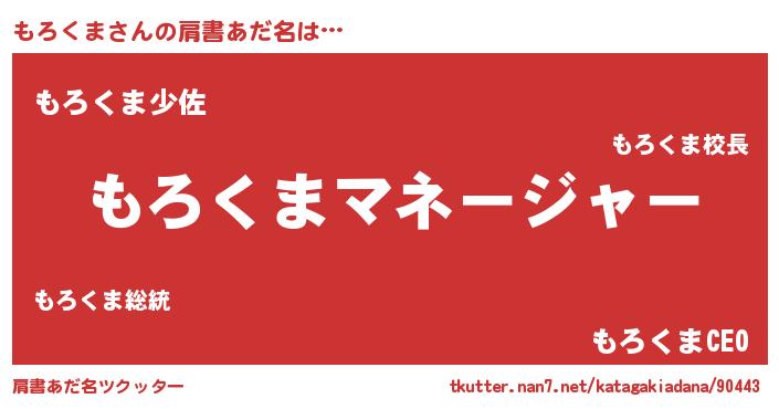 | 男性向けラノベタイトル風あだ名 | 『はたらくもろくまさま!』 |