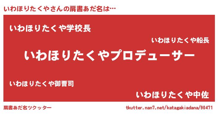 | 欧米人風あだ名 | 『アンジェラ・いわほりたくや』 |