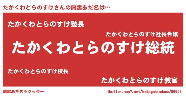 | 意味不明あだ名 | 『自称たかくわとらのすけ』 |