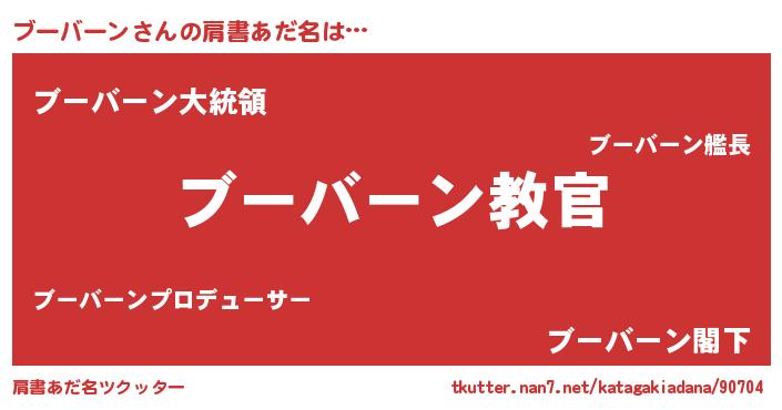 | 男性向けラノベタイトル風あだ名 | 『この素晴らしい世界にブーバーンを!』 |