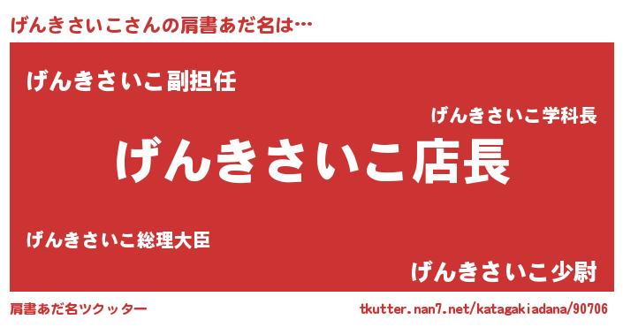 | 男性向けラノベタイトル風あだ名 | 『げんきさいこの憂鬱』 |