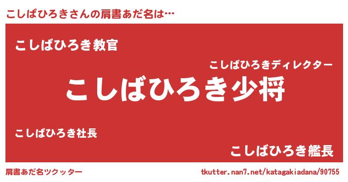 | 男性向けラノベタイトル風あだ名 | 『こしばひろき~年齢イコール彼女いない歴の魔法使い~』 |