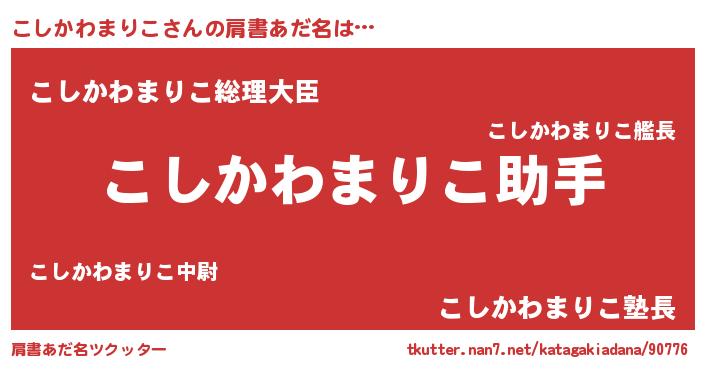 | 女子向けラノベタイトル風あだ名 | 『死神こしかわまりこの再婚』 |