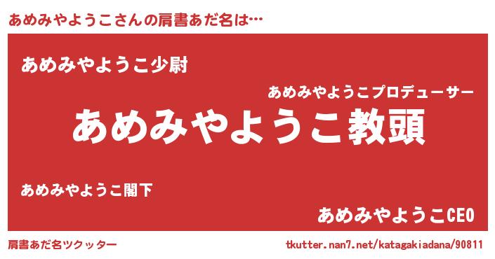 | 恥ずかしいあだ名 | 『あめちん』『プリティーあめみやようこ』 |