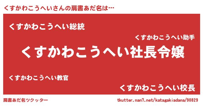 | 男性向けラノベタイトル風あだ名 | 『くすかわこうへいの憂鬱』 |