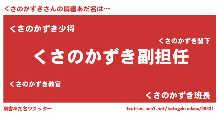 | ヒーロー風カッコイイあだ名 | 『ネオクサノカズキ』『暗黒騎士クサ』 |