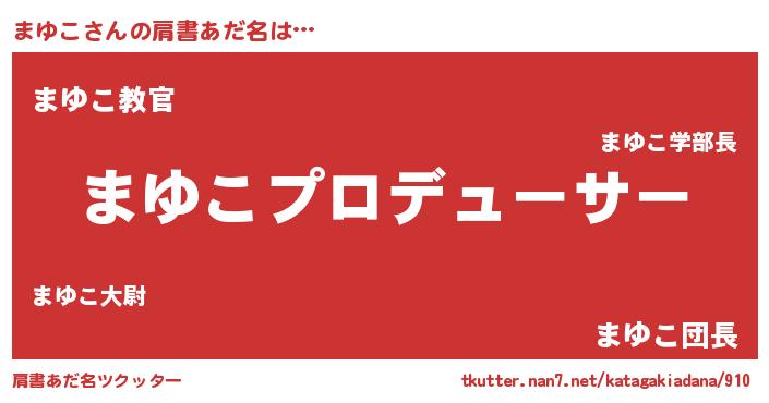 | 男性向けラノベタイトル風あだ名 | 『まゆこに滅ぼされるだけの簡単なお仕事です』 |