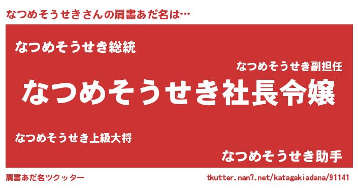 | 女子向けラノベタイトル風あだ名 | 『なつめそうせき姫と円卓の騎士』 |