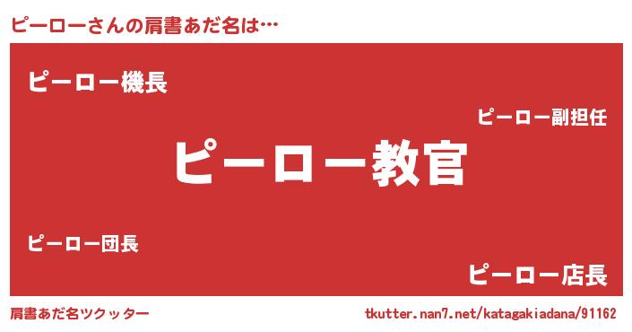 | 男性向けラノベタイトル風あだ名 | 『この素晴らしい世界にピーローを!』 |