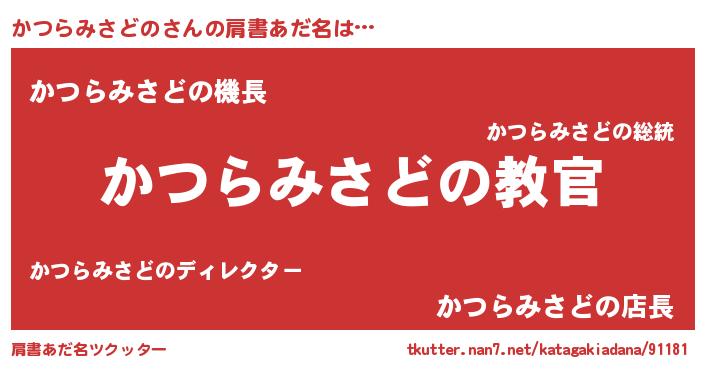 | ヘコむあだ名 | 『かつもー』『なまこ酢』『かつっ子』 |