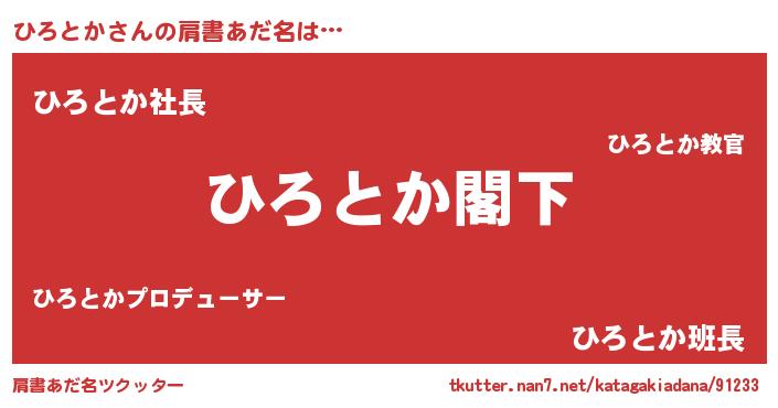 | ヒーロー風カッコイイあだ名 | 『サイバー戦士ヒロトカ』『魔戒騎士ヒロ』 |