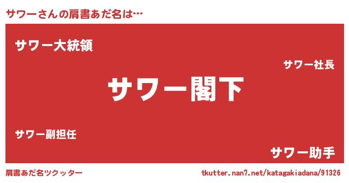 | ファンタジー風あだ名 | 『ゼサワトゥ』『エターナルサワーー』 |
