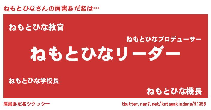 | ヘコむあだ名 | 『ねもぷりん』『ねもとひな(遠い目)』 |