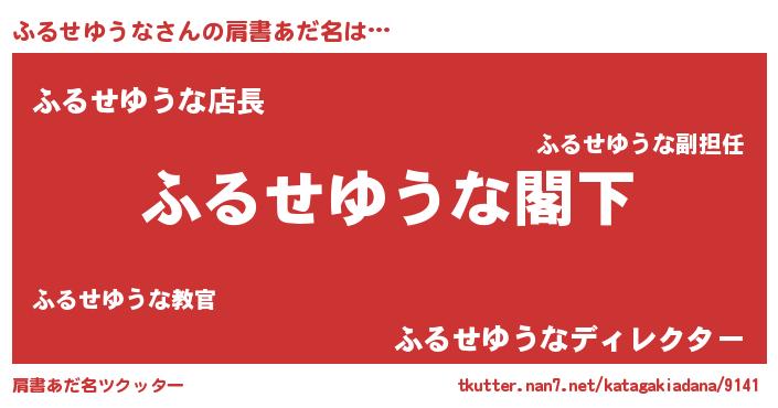 | ヘコむあだ名 | 『ふるにゅー』『ふるせゆうな(爆)』 |