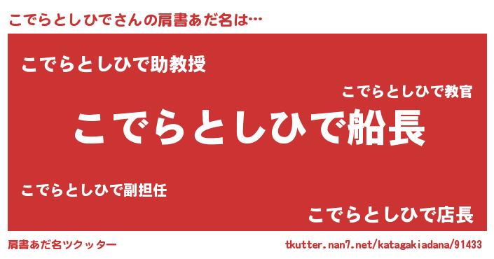 | ヘコむあだ名 | 『こでふぇ~』『こでらとしひで(笑)』 |