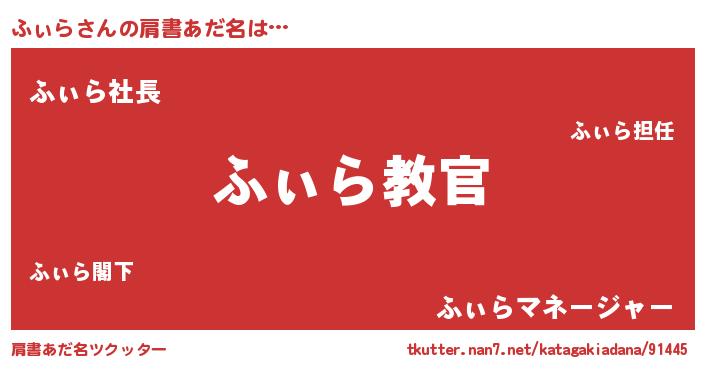 | 男性向けラノベタイトル風あだ名 | 『この素晴らしい世界にふぃらを!』 |