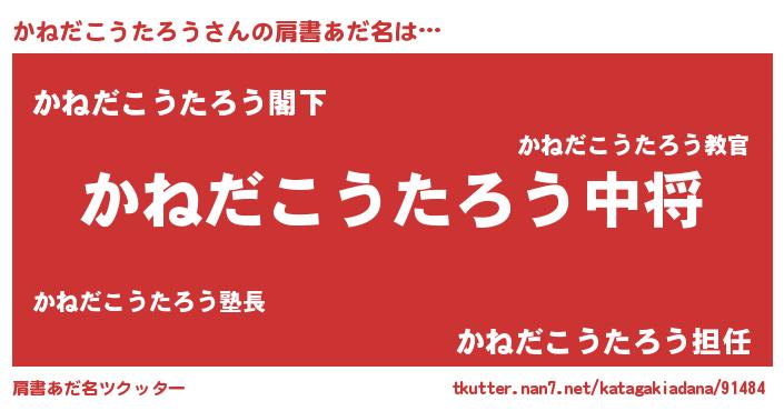 | 女子向けラノベタイトル風あだ名 | 『かねだこうたろうの玉の輿計画!』 |