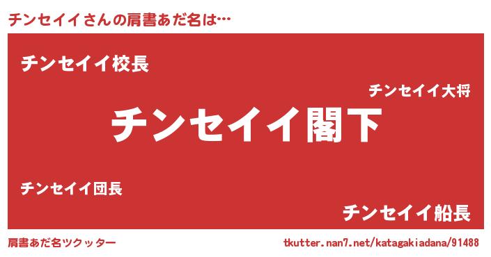 | 意味不明あだ名 | 『自称チンセイイ』『永久保存チンセイイ』 |