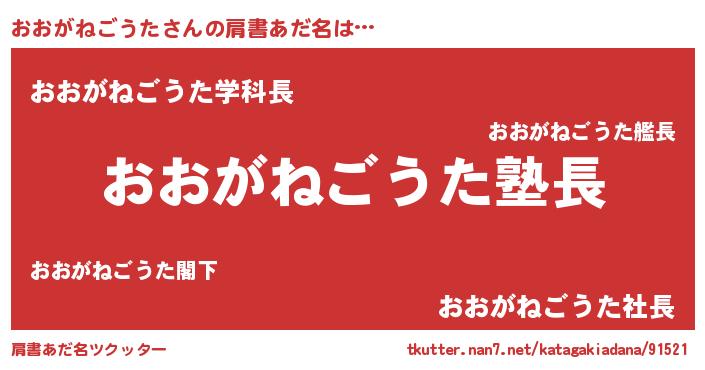 | 男性向けラノベタイトル風あだ名 | 『おおがねごうたの嫁は女の子じゃないと思った?』 |