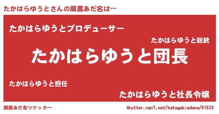 | 女子向けラノベタイトル風あだ名 | 『たかはらゆうとは平凡を望む』 |