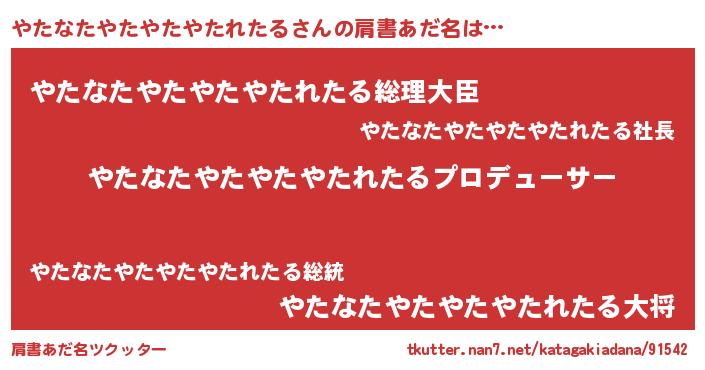 | 男性向けラノベタイトル風あだ名 | 『はたらくやたなたやたやたやたれたるさま!』 |
