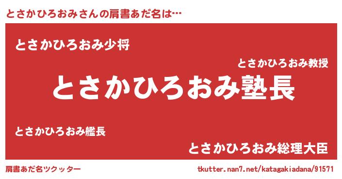 | ヒーロー風カッコイイあだ名 | 『暗黒騎士トサ』『ネオトサカヒロオミ』 |