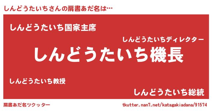 | 欧米人風あだ名 | 『しんどうたいち・ステッグマイヤー』 |