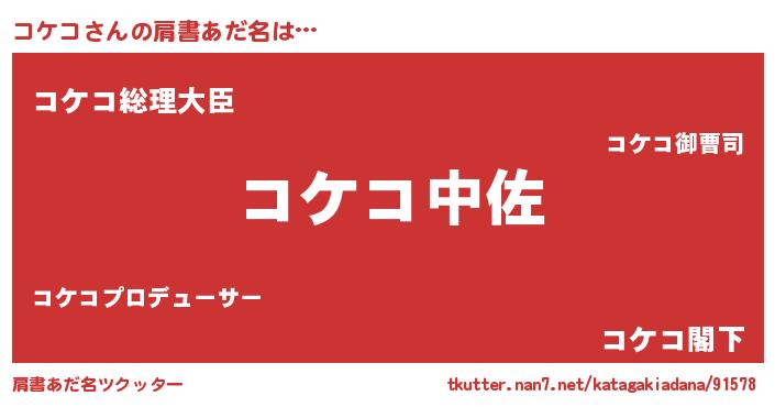 | 男性向けラノベタイトル風あだ名 | 『コケコスレイヤー』『コケコの憂鬱』 |