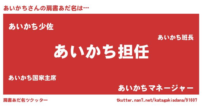 | 意味不明あだ名 | 『永久保存あいかち』『自称あいかち』 |